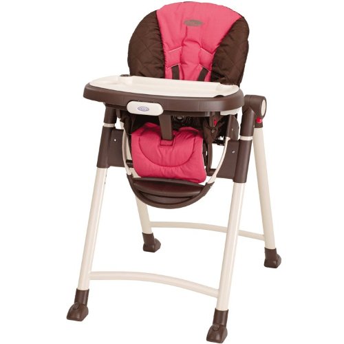 With comfort for baby and convenience for you, the Graco Contempo High Chair - Deco offers everything you need for an ideal feeding experience. Baby can relax during mealtimes against the soft infant head and body supports in 1 of 3 recline positions. Baby is securely held in place by the 3- or 5-point adjustable harness for safety and comfort. Situate baby at table-height for family mealtimes with 6 varying height adjustments. The dishwasher-safe, pull-out tray insert and wipeable Leatherette seat pad make clean-up a snap. The high chair is designed with parents in mind and makes mealtimes a little less hectic with 1-hand tray removal and locking wheels that can be secured for easier feeding. The slim design makes storage and transportation a breeze, and the chair comes pre-assembled for use right out of the box. Weight limit: 40 lbs.